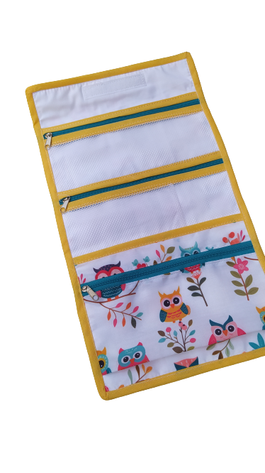Dos bolsillos con tela de red y uno con tela de algodón.