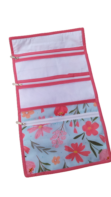 Dos bolsillos con tela de red y uno con tela de algodón.