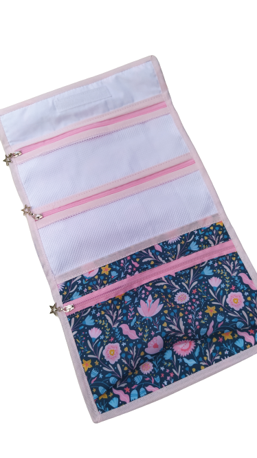 Dos bolsillos con tela de red y uno con tela de algodón.