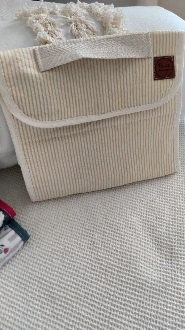 Porta cosméticos de tusor rayado