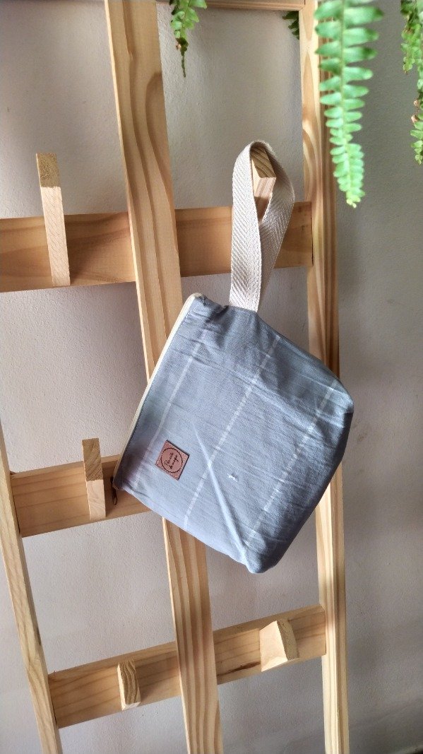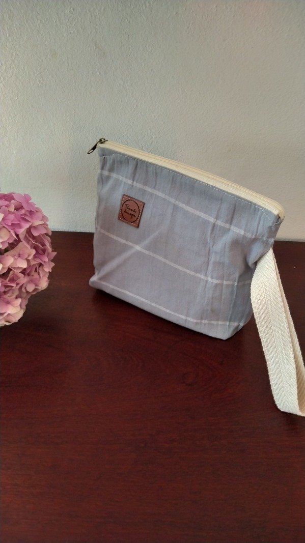 Sobre de tela forrado, con cierrey correa.