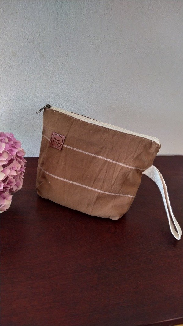 Sobre de tela forrado, con cierrey correa.