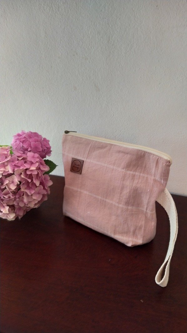 Sobre de tela forrado, con cierrey correa.