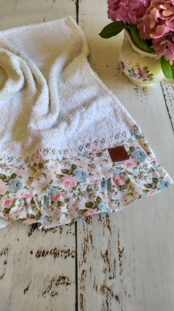 Toalla de mano c{n detalles de tela estampada y puntilla