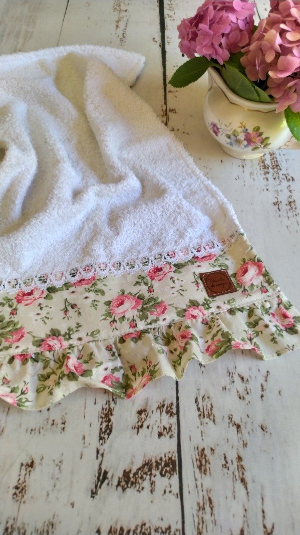 Toalla de mano c{n detalles de tela estampada y puntilla