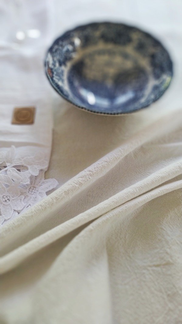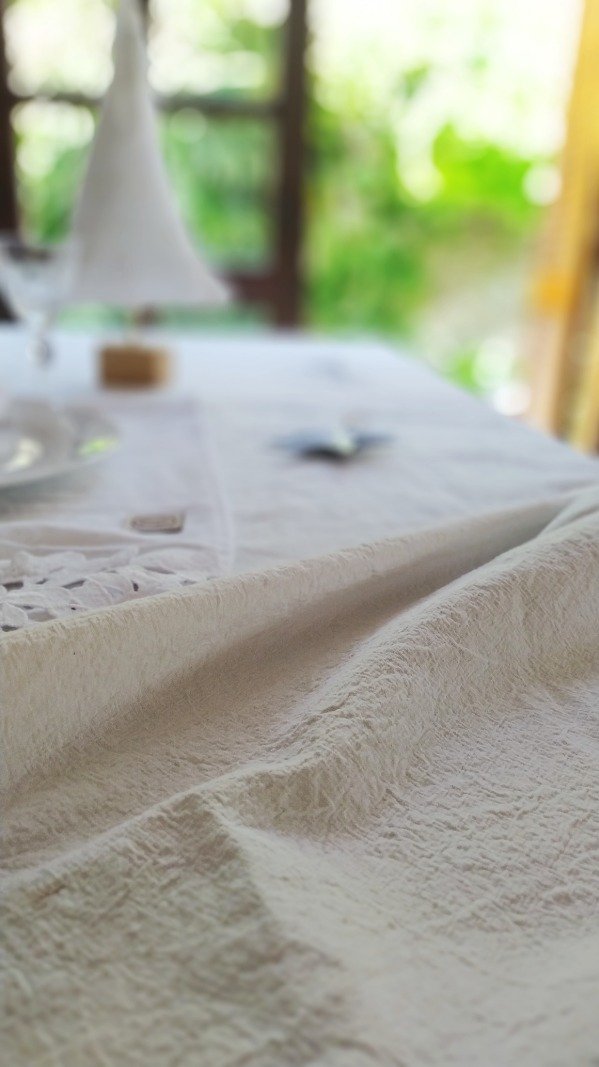 Mantel de tusor blanco tiza